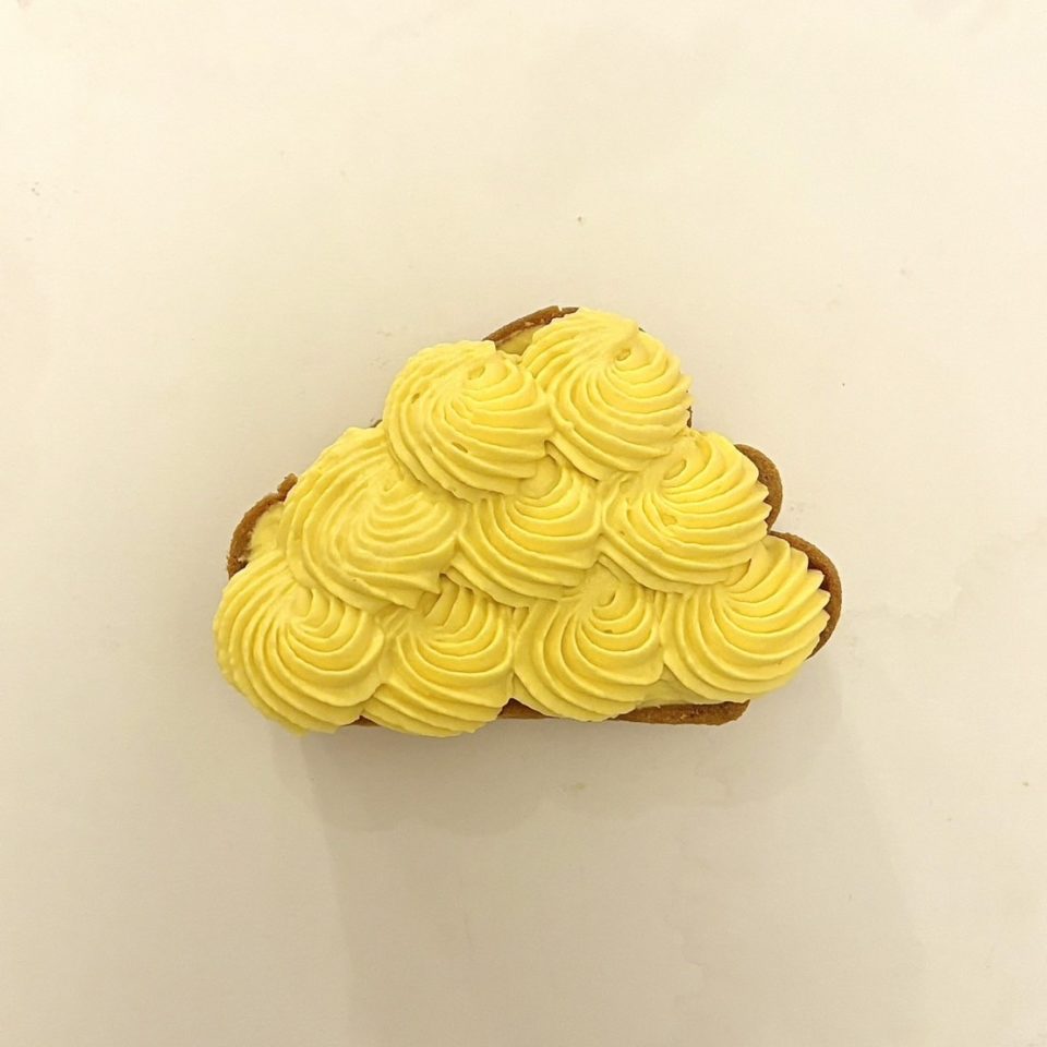 タルト生地は少し甘めのシュクレ生地をタルト屋ならではの工夫と手仕事で「雲」のシルエットに焼いて、ベースはマンゴープリン。